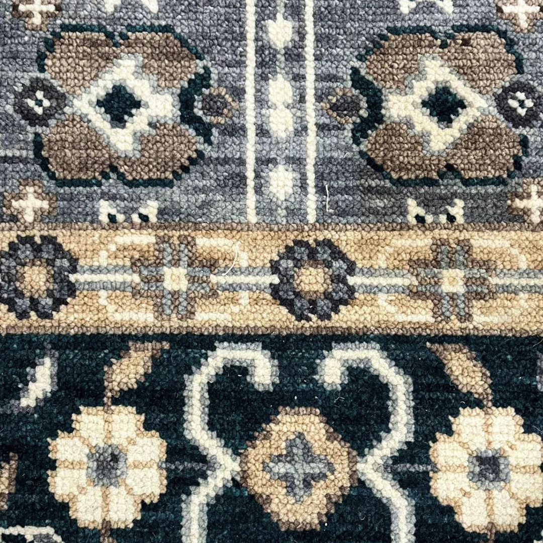 Bring timeless elegance and sophisticated color to your space with this artisan-crafted, hand-knotted Oriental rug. Featuring a soothing, muted blue field enriched with contrasting deep teals and soft, earthy neutrals, this rug strikes the perfect balance between classic craftsmanship and a tranquil, modern color palette.Design - Traditional Oriental/Khotan style with.