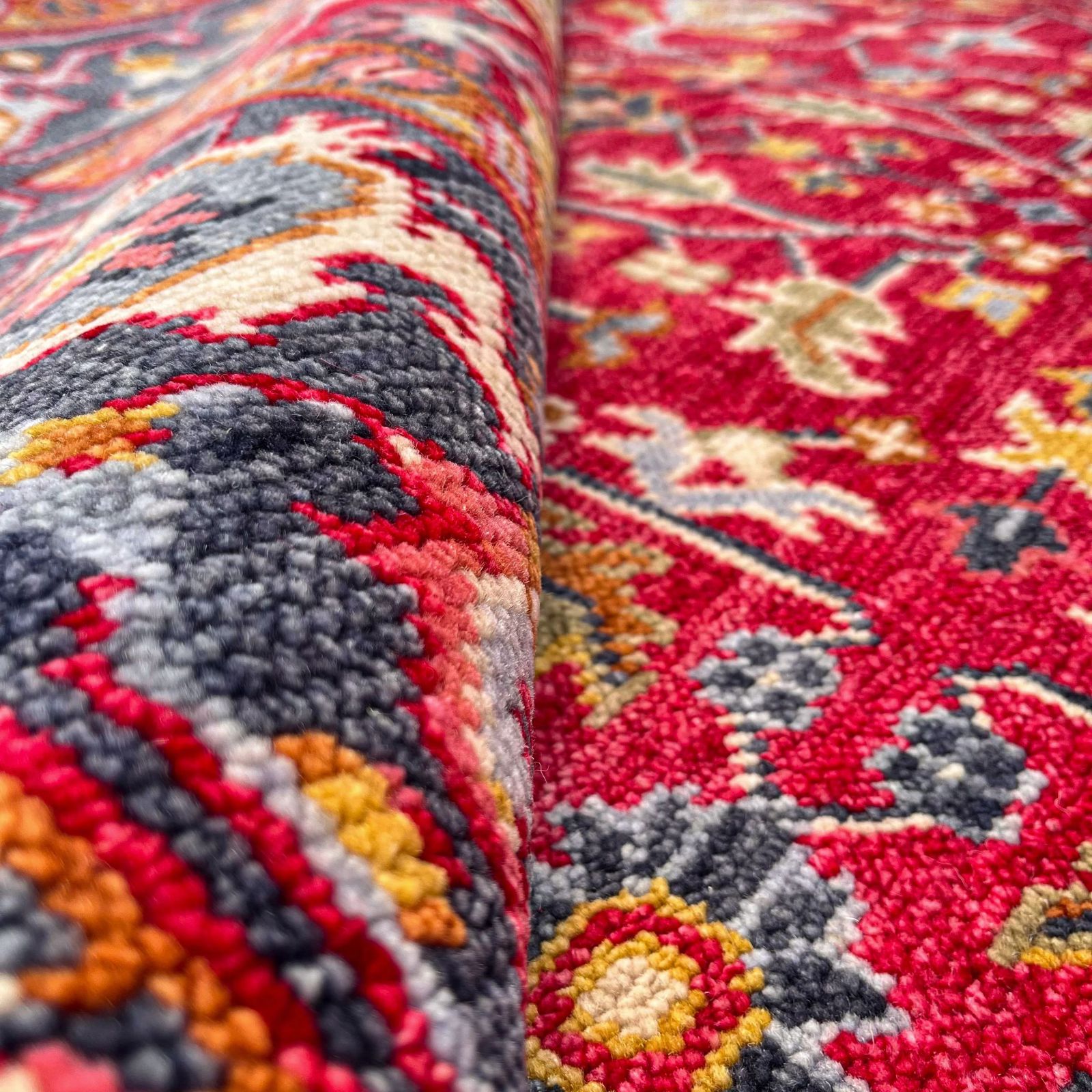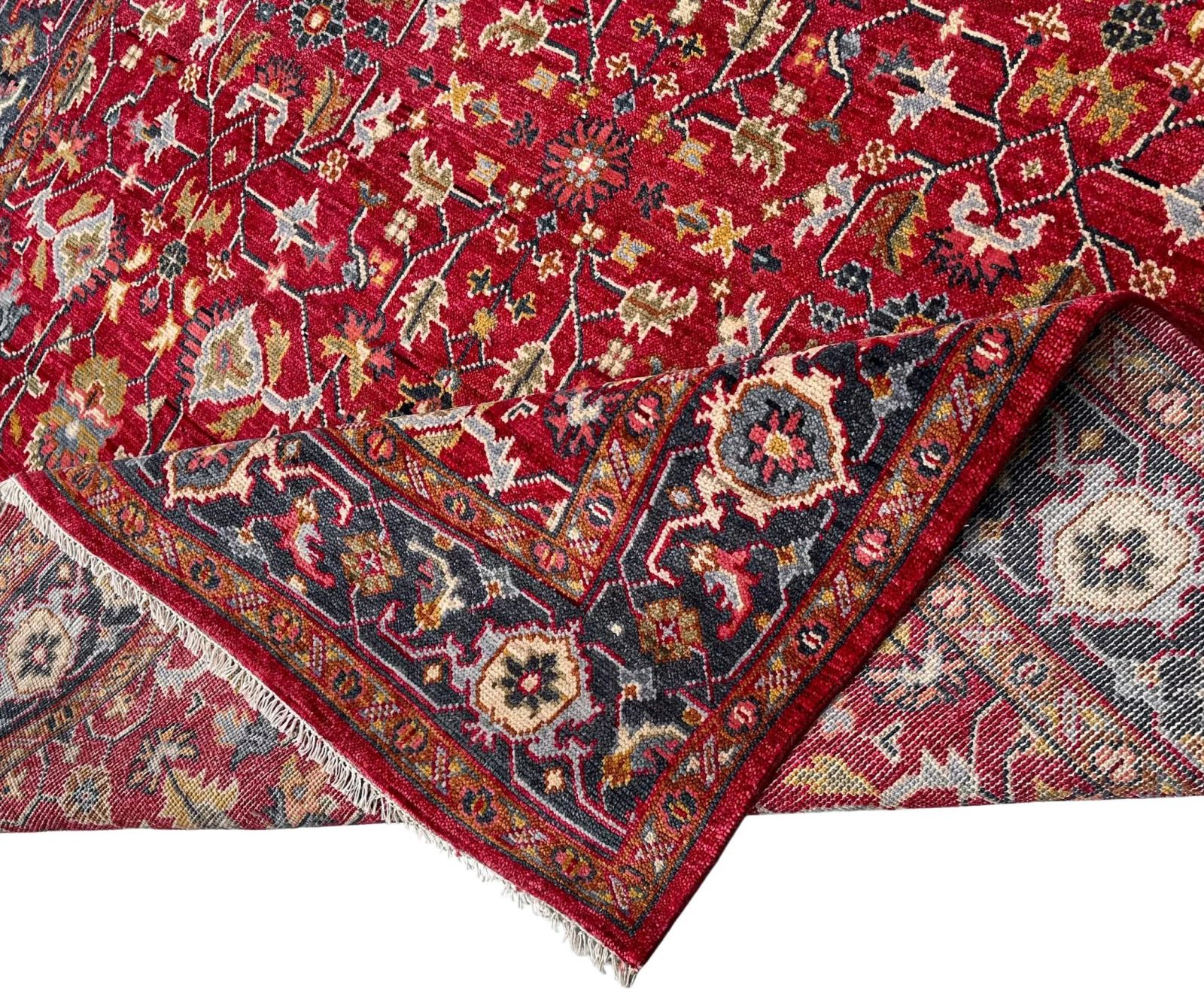 Bring the artistry of centuries-old weaving traditions into your home with this stunning Hand-Knotted Oushak Area Rug. Featuring a gorgeous palette of Royal Blue, Red, and Muted Ivory, this rug is more than just floor decor—it's a genuine piece of heirloom-quality craftsmanship.
